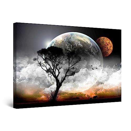 Startonight Impression sur Toile - La Lune derrière un Arbre - Tableau Decoration Murale Salon Moderne - Image sur Toile - 60 x 90 cm Idée Cadeau Élégante et Originale Effet Lumineux Nocturne