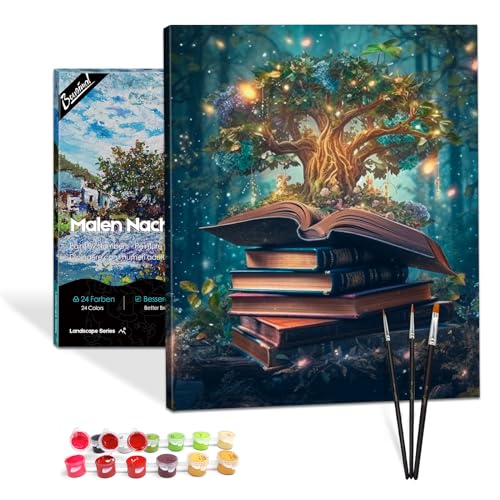Bougimal Painting By Numbers adultes paysage sans cadre avec pinceaux et peintures acryliques - 40 x 50 cm, Arbre magique