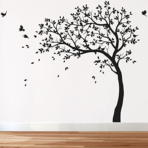 Grand arbre mural sticker autocollant pour chambre d'enfant avec oiseaux et arbre KW032 (Branches à gauche, Tout en Noir)