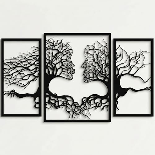 DEKADRON Art mural arbre de vie en métal, 3 panneaux, décoration murale moderne, 3 pièces de tentures murales, art mural en métal noir, utilisation en intérieur/extérieur, 125 x 73 cm (l x H)