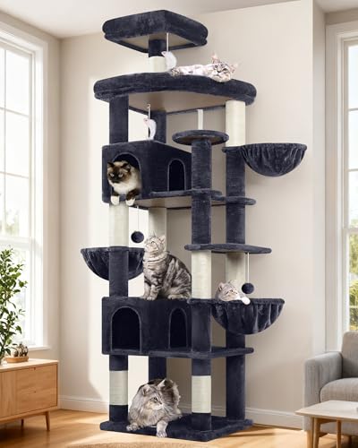 Globlazer Arbre à Chat XXL Grande Hauteur 183 cm avec 2 Niches, Plateformes, Perchoir, Panier, Lit Amovible, Peluche Jouets, Arbres à Chats pour Gros Chat Adulte Maine Coon 10kg+ (S72, Gris Foncé)