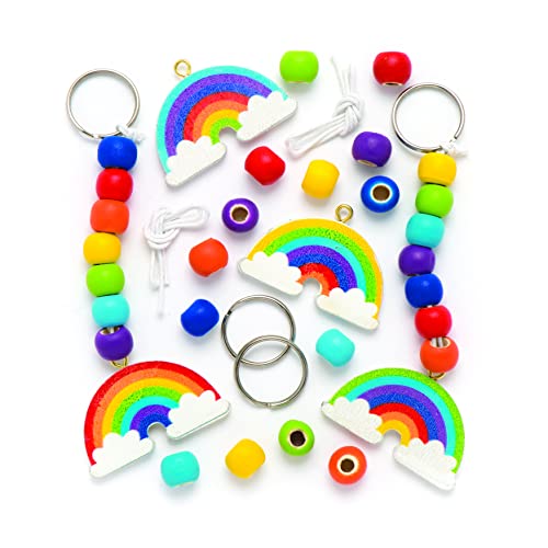 Baker Ross Kits de porte-clés et de breloques pour sac en bois arc-en-ciel que les enfants pourront décorer - Kits d'arts et loisirs créatifs amusants pour enfant (Lot de 4)