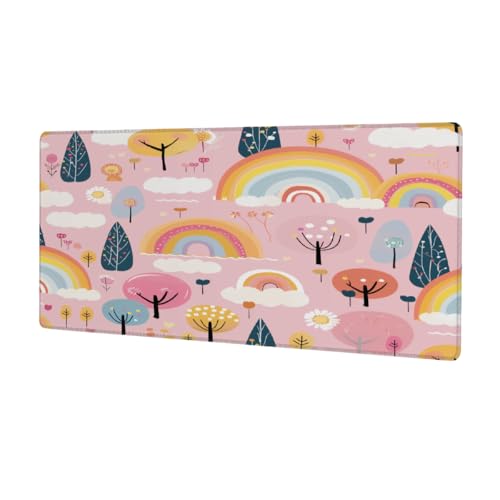 VQUVQV Tapis de souris étendu avec base antidérapante Motif arbre arc-en-ciel pour la maison, le bureau, les jeux vidéo, grand tapis de bureau pour clavier et souris