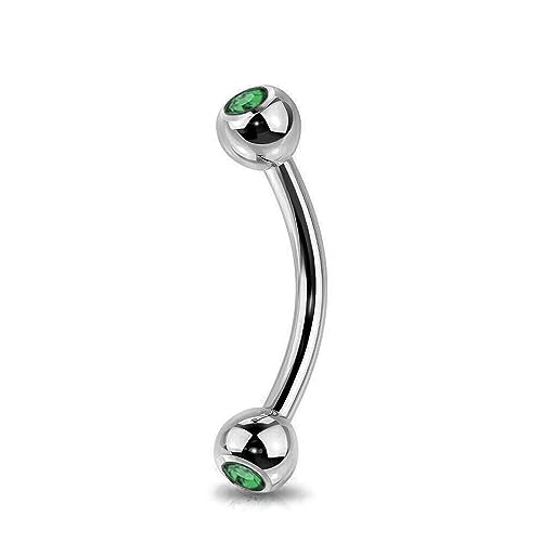 Jewel Barrel Piercing Arcade Anodisé, Sourcil Banane Boucles d'oreilles Barbell Incurvé Courbé Rook, Daith Bijoux de Corps, Taille 16g (1,2 mm) Barre 6 mm/8 mm avec Boules (Vert, 8)