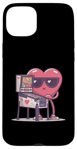 Pinball Heart Arcade Game Lunettes de Soleil rétro Saint-Valentin Coque pour iPhone 15 Plus