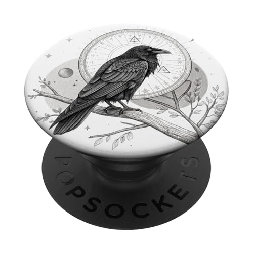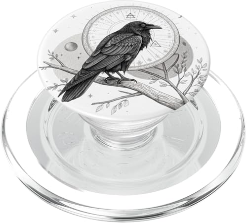Céleste Corbeau Corbeau Oiseau Lune Géométrie Sacrée Art PopSockets PopGrip pour MagSafe