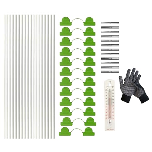 Lot de 18 arceaux de serre - Cadre en acier inoxydable - 42,7 cm de long - Avec thermomètre et gants - Pour plate-bande surélevée - Pour couvrir les légumes et les fraises