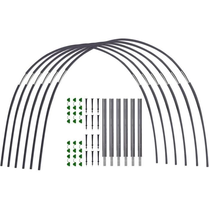 Arceau pour Serre Tunnel,Tunnel Jardin Potager,Arceaux Serre de Jardin,Arceau de Jardin,Kit Cerceau de Jardin pour Serre,Cadre pour Serre de Jardin,Clips pour Serre,Tunnel de Culture pour Plantes