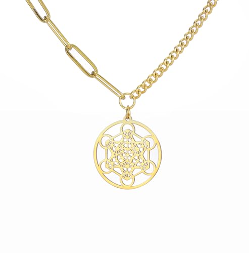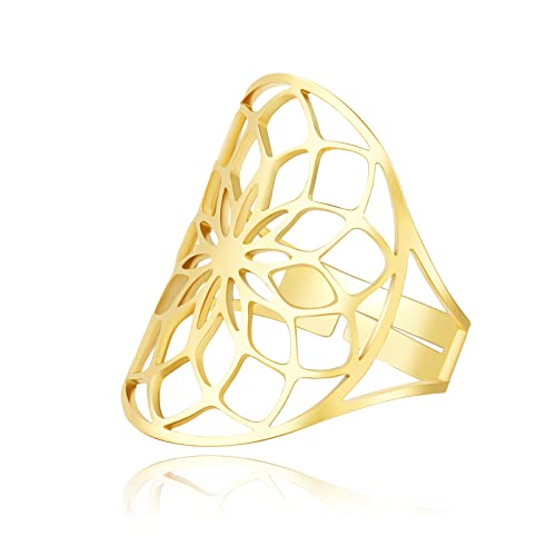 TEAMER Bague réglable en acier inoxydable motif archange métatron pour femme et fille (Or - style F)
