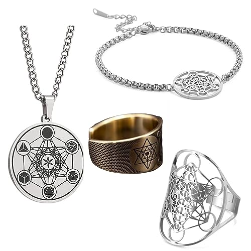 TEAMER Bague réglable en acier inoxydable motif archange métatron pour femme et fille (Or - style D)