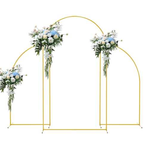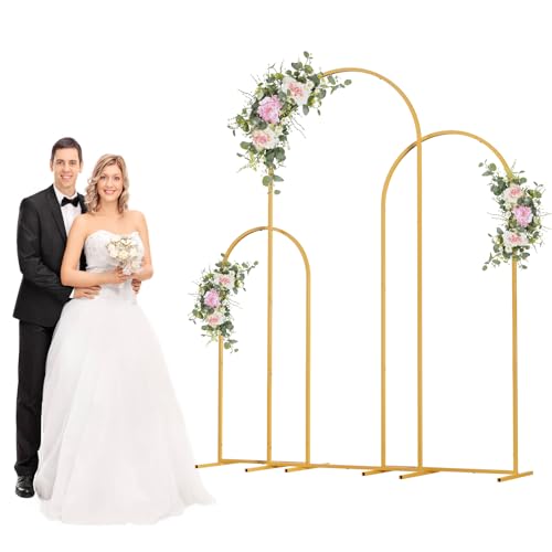 Lot de 3 Arches Métalliques Dorées Mariage et Anniversaire – Arche Mariage, Arche Ballon, Support Toile de Fond, Décoration Jardin – 3 Tailles 185cm 156cm 115cm