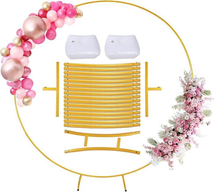 PlusFive Arche de Ballon en Métal, Demi Arche Ballon 2,5m, Grand Kit d'Arche de Ballon Rond, Arche Mariage Doré, Arche pour Ballon Idéal pour Arche de Mariage Arche de Noël Arche Ballon Anniversaire
