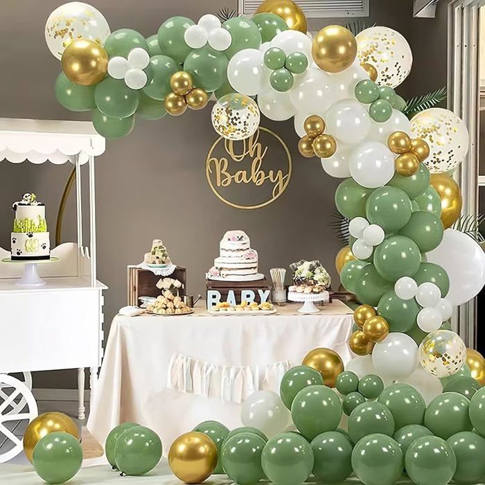 152 Pièces Kit Arche Ballon Vert Et Or Rétro Vert Olive Sauge avec Confettis or Blanc Ballons Anniversaire pour Vert