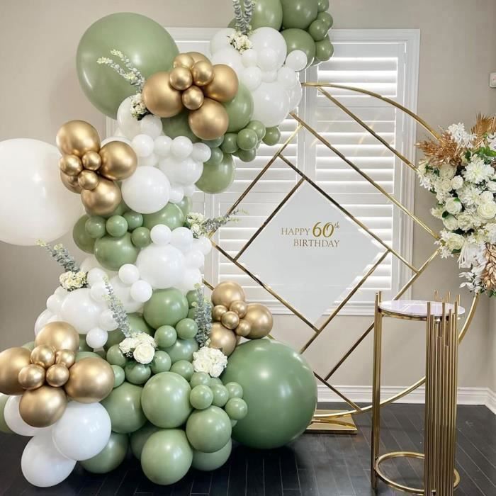 Kit Arche Ballon 137 Pièces Guirlande Ballons Vert Blancs Or pour Decoration Anniversaire Mariage Décor Fête à Thème Jungle