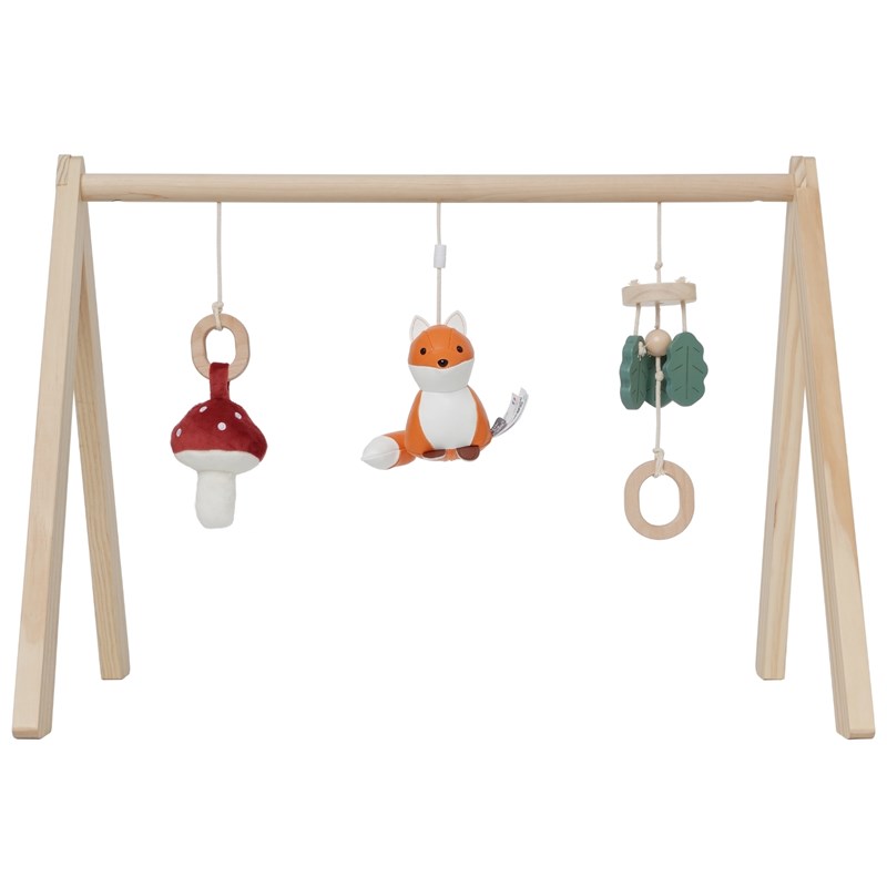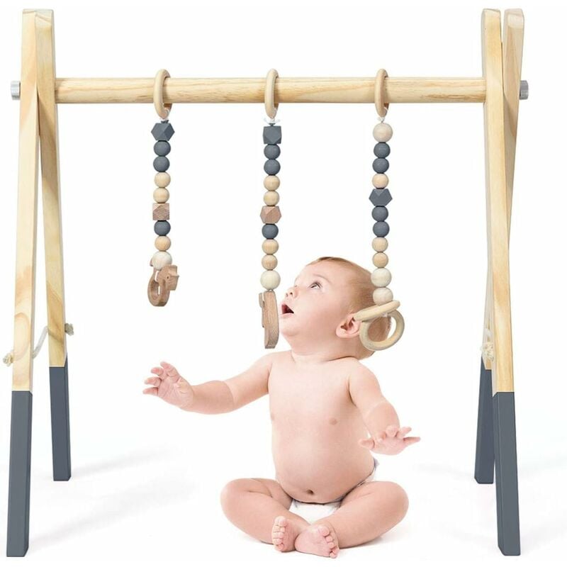 Arche d'éveil scandinave en bois et ses 3 hochets
