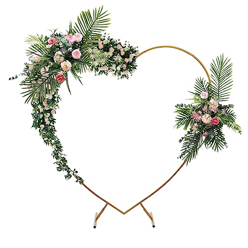 DIFU Arche de ballons en forme de cœur - Support pour arche de mariage - 2 x 2,1 m - Support de fond autoportant pour anniversaires, fêtes, banquets - Doré