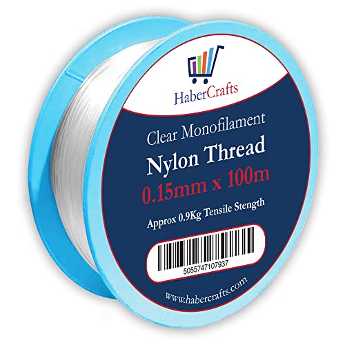 Fil de pêche en nylon transparent de 0,15 mm, non extensible et transparent pour décoration à suspendre, arche de ballons, perles et fabrication de bijoux – Résistance à la traction : environ 0,9 kg (0,15 mm x 100 m – 1 bobine)