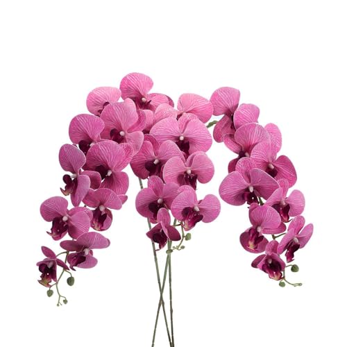 Soulnioi Lot de 3 fleurs d'orchidée artificielles, 9 têtes par tige, tiges de 99,1 cm de long pour arche de mariage, centres de table et présentation de pièce – Rose foncé