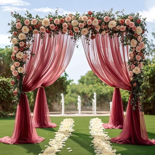 FJISD 300/600 * 75 CM 2 pièces Ivoire Mariage Arche Drapage Tissu Mousseline de Soie Arc Rideaux pour fête en Plein air décor de Mariage Chemin de Table Rideau Transparent
