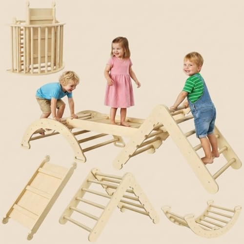 GarveeHome Ensemble Triangulaire 7 en 1, Jeux d'escalade Pliables pour Enfant, Ensemble d'escalade en Bois avec Arche, Rampe Et échelle, Baby Climber, Jungle Gyms d'Intérieur pour Tout-Petits