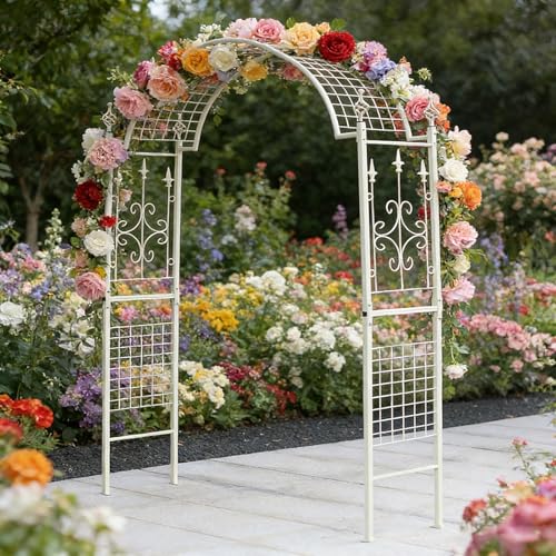 Xverycan Arche Jardin pour Rosiers Plantes Grimpantes, Arche de Jardin métallique Plus Robuste 2,4x2,4m,Arche de Jardin en Treillis,Décoration de Fête