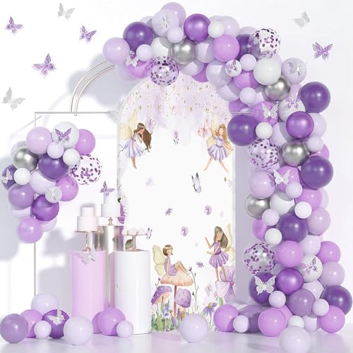 MEHOFOND 1 x toile de fond ronde de 2,1 m pour arche de jardin, papillon, fée dorée pailletée, cadre pour photographie, décoration de fête prénatale, gâteau, anniversaire, décoration de chiara
