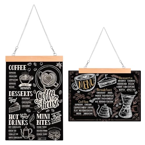 Srvnpioy Lot de 2 Tableaux Noirs à Suspendre A3 (420x297mm) Tableau Ardoise Craie Noir pour café, restaurant, décoration murale
