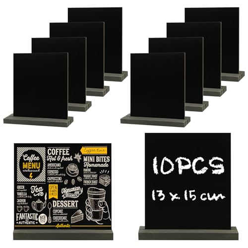 Lot de 10 Mini Tableau Noir,13 x 15 cm Tableaux Noirs Double Face avec Supports en Bois,Mini Panneau D'affichage,Ardoise Craie Ardoise Effacable pour Anniversaire Mariage Restaurant Café