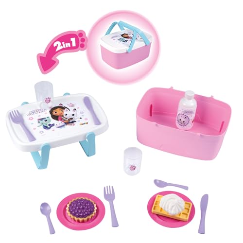 Smoby - Panier Pique Nique Gabby et la Maison Magique 2 en 1 - Se Transforme en Table d'Appoint - 14 Accessoires Inclus - A Partir de 3 Ans - Fabrication Française