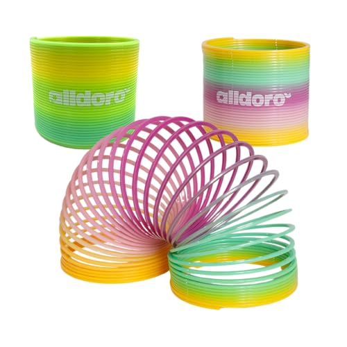 alldoro Flexi Rainbow Spring-Diamètre : Environ 7,4 cm-Tapis d'escalier aux Couleurs Plume Coureur Magique Enfants à partir de 3 Ans, 60336, Spirale Arc-en-Ciel Multicolore, Regenbogen Spirale