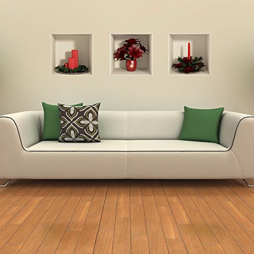 Ambiance Sticker 3 Stickers Adhésifs Muraux Noël | Stickers Autocollants Muraux à Effet 3D Bougies et Sapin de Noël - Décoration Murale Fêtes de Noël pour Salon Cuisine & Chambre | 3 x 30x30 CM