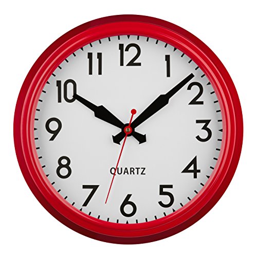 Bernhard Products Horloge Murale silencieuse sans tic-tac de qualité à Quartz Ronde de 25,4 cm - Fonctionnement à Piles - Facile à Lire - pour Maison/Bureau/Cuisine/Salle de Classe/école