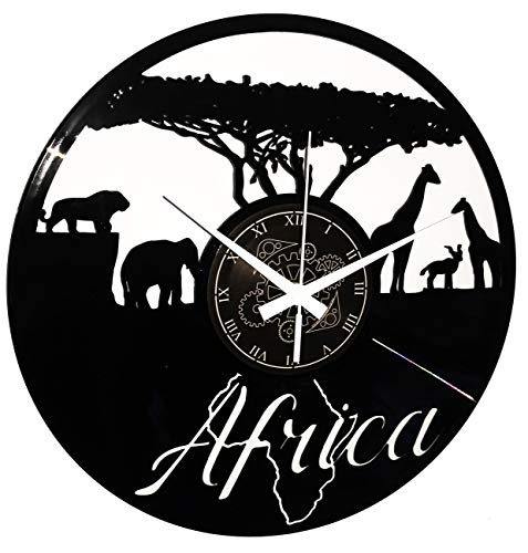 Instant Karma Clocks | Horloge Murale Design Afrique Savane Animaux Élégants Élément Nature Déco Jungle | Mouvement à Quartz Silencieux | Idée Cadeau pour Salon, Chambre, Cuisine