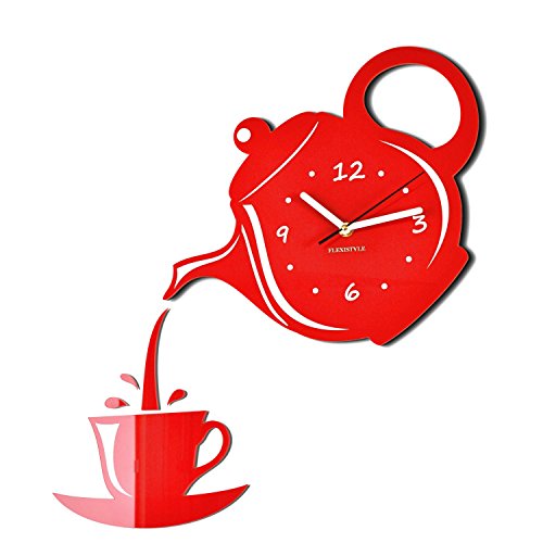 FLEXISTYLE Horloge Murale Moderne pour la Cuisine et Le pichet Rouge, 45 x 45 cm, Design Silencieux et fabriqué en UE