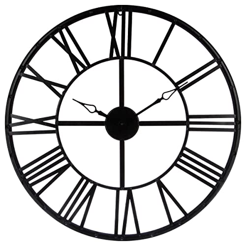 Atmosphera - Horloge Murale Industrielle Andras Noire, 70 cm de Diamètre, Métal, Chiffres Romains - pour Salon, Bureau, Cuisine