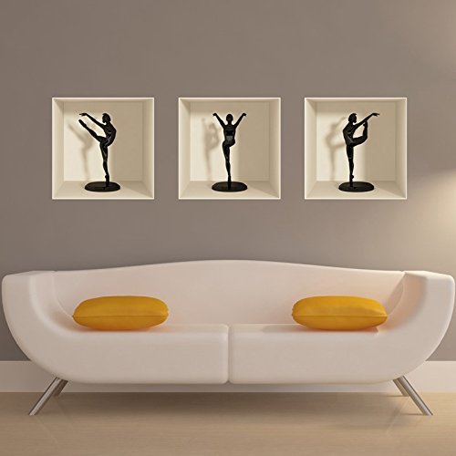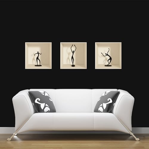 Ambiance Sticker Muraux Design, 3D Figurines Danceuses Effet Vinyle Adhésifs Muraux, Peintures Murales Décoration Murale pour Chambre à Coucher, Cuisine, Bureau - Lot de 3 Pièces de 30 x 30 cm
