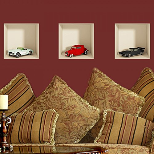 Ambiance Sticker Muraux Design, 3D Voitures Effet Vinyle Adhésifs Muraux, Peintures Murales Décoration Murale pour Chambre à Coucher, Cuisine, Bureau - Lot de 3 Pièces de 30 x 30 cm