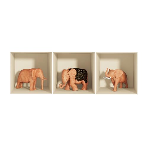 Ambiance Sticker Muraux Design, 3D Elephants Effet Vinyle Adhésifs Muraux, Peintures Murales Décoration Murale pour Chambre à Coucher, Cuisine, Bureau - Lot de 3 Pièces de 30 x 30 cm