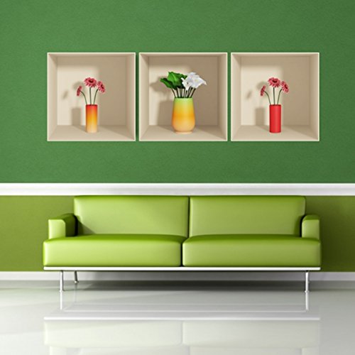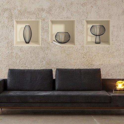 Ambiance Sticker Muraux Design, 3D Vase en Verre Effet Vinyle Adhésifs Muraux, Peintures Murales Décoration Murale pour Chambre à Coucher, Cuisine, Bureau - Lot de 3 Pièces de 30 x 30 cm