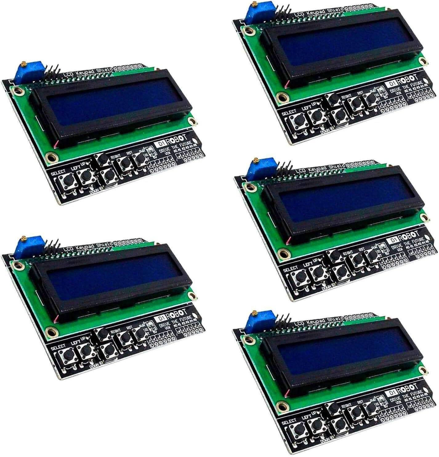 DELI-5 X Hd44780 1602 Lcd Module Afficheur Bleu Keypad 2 X 16 Caractères De Couleur Blanche Compatible Avec Arduino Et Raspberry Pi Y Compris Un Ebook!
