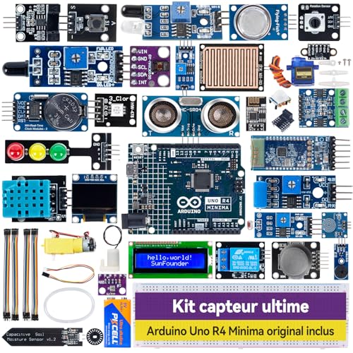 SUNFOUNDER Kit de capteurs avec Arduino Uno R4 Minima, Smart IoT et projets de capteur de base avec tutoriels en ligne, convient aux débutants à partir de 8 ans (Arduino Uno R4 Minima original inclus)