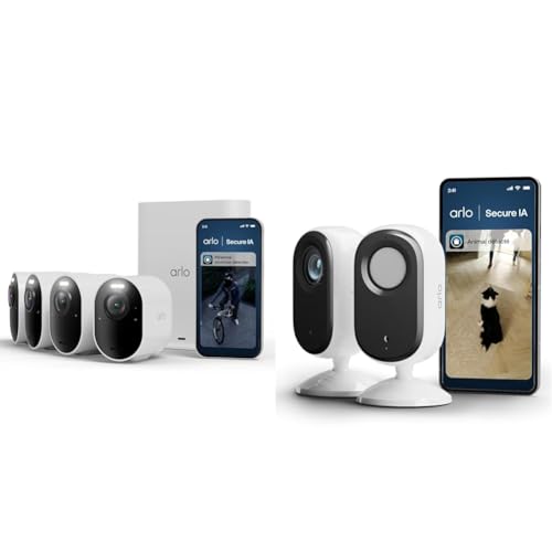 Arlo Ultra 3 et Indoor, Caméra de Surveillance WiFi Extérieure sans Fil 4K, Détection par IA, Vision Nocturne Couleur, Compatible avec Alexa, Essai Secure Inclus, 4 Caméras + Smarthub