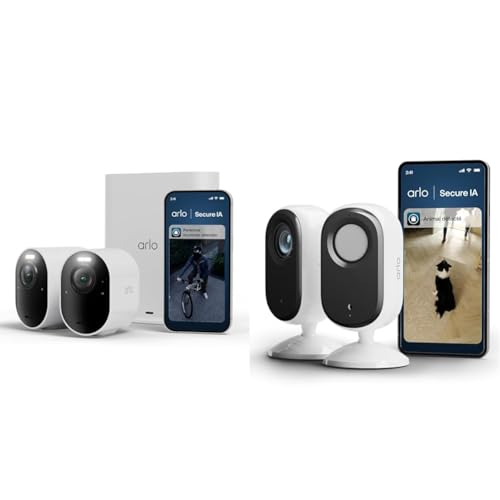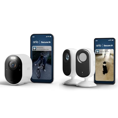 Arlo Ultra 3 et Indoor, Caméra de Surveillance WiFi Extérieure sans Fil 4K, Détection par IA, Vision Nocturne Couleur, Compatible avec Alexa, Essai Secure Inclus, 2 Caméras + Smarthub