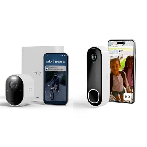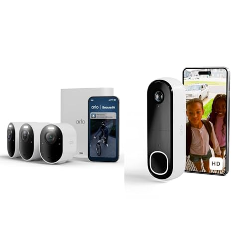 Arlo Ultra 3 et Sonnette, Caméra de Surveillance WiFi Extérieure sans Fil 4K, Détection par IA, Vision Nocturne Couleur, Compatible avec Alexa, Essai Secure Inclus, 2 Caméras