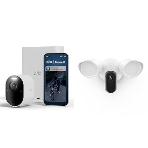 Arlo Ultra 3 et Floodlight, Caméra de Surveillance WiFi Extérieure sans Fil 4K, Détection par IA, Vision Nocturne Couleur, Compatible avec Alexa, Essai Secure Inclus, 2 Caméras + Smarthub