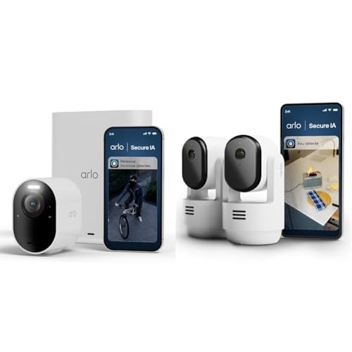Arlo Ultra 3 et Indoor PTZ, Caméra de Surveillance WiFi Extérieure sans Fil 4K, Détection par IA, Vision Nocturne Couleur, Compatible avec Alexa, Essai Secure Inclus, 3 Caméras