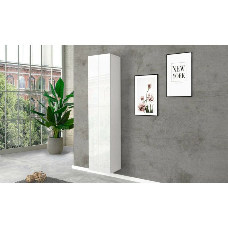 Lettiemobili – Armoire murale 1 porte suspendue 40x165x29cm – Finition mélamine brillante – 4 compartiments – Système d'ouverture push-click