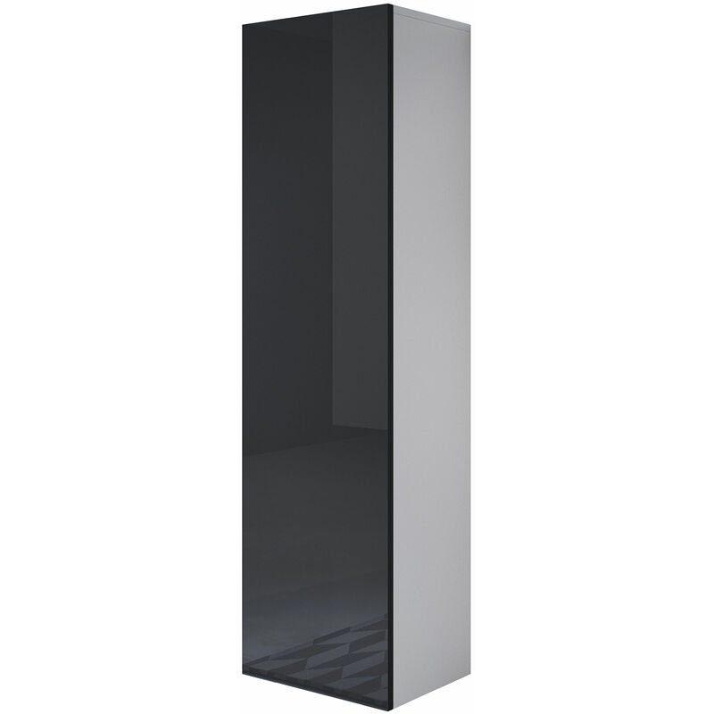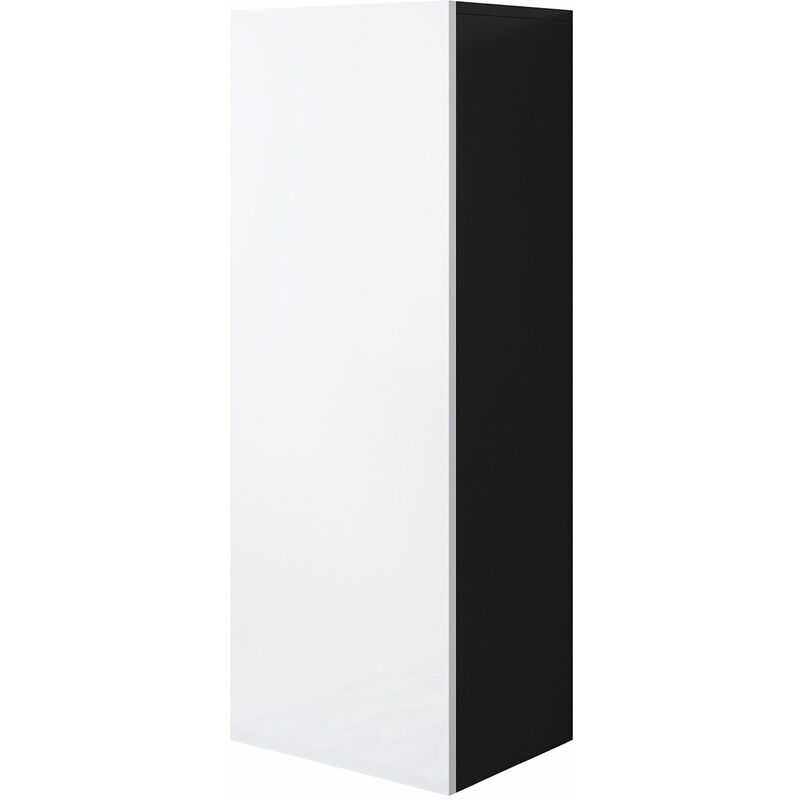 Armoire murale 1 porte Meuble de Rangement suspendu 40x126x29cm 3 compartiments Modèle Luke V1 Noir et Blanc Finition brillante