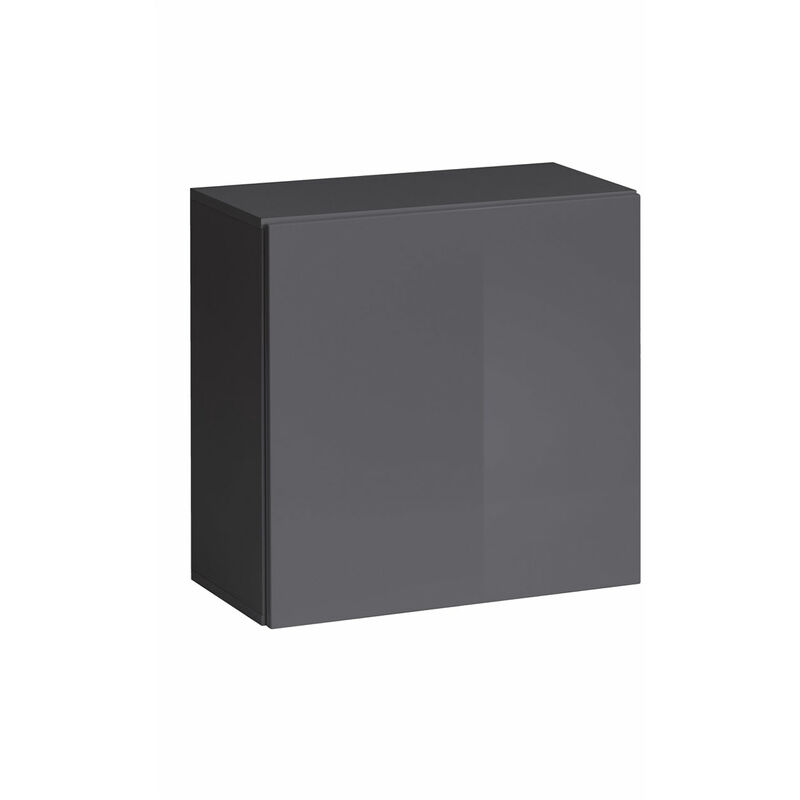 Armoire murale 1 porte Meuble de Rangement 60x60x30cm 2 compartiments Modèle Berit 60x60 Gris Finition brillante