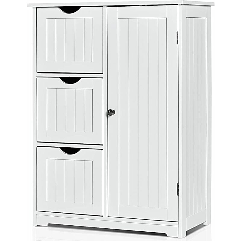 Goplus - Rangement Salle de Bain 3 Tiroirs &1 Armoire, Placard Porte Magnétique, Anti-Basculement, étagère Réglable, 60x30x82cm,Blanc